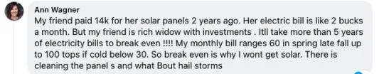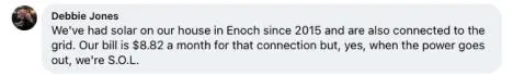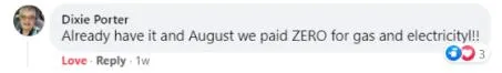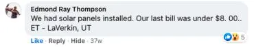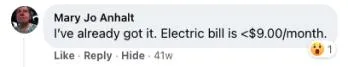 "This last month my electric bill was $16. I'll take a picture later and send it to you. Not too shabby.😊"