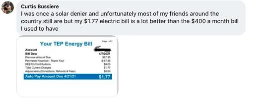 " Making the switch to solar was the best decision of my life. Not only are my electric bills cheaper, but I won't even have electric bill in 8 years! "